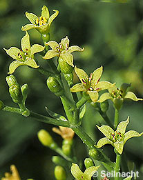Der Färber-Krapp ist auch unter den Namen Echte Färberröte oder einfach nur als Krapp bekannt. Krapp gehört wie das Labkraut und der Färbermeister zur Familie der Rötegewächse. Diese sind an ihrem rotem Rhizom, das einen roten Farbstoff enthalten, zu erkennen. Der vierkantige, aufsteigende Stängel des Färber-Krapps ist wie die Blattränder mit rückwärts gerichteten, kleinen Stacheln versehen und fühlt sich rau an. Damit und mit ihren am Blattrand fein gezähnten Blättern kann sich die Pflanze an Aufsteighilfen oder an Mauern festhaken. Die ledrigen Blätter stehen zu viert bis zu sechst in Quirlen am Stängel, ihre Form ist eiförmig-lanzettlich. Die fünfzähligen, zwittrigen Blüten bilden eine lockere Rispe als Blütenstand. Ihr Durchmesser beträgt nur drei bis vier Millimeter. Die Kronblätter sind grüngelb und bilden einen kleinen Trichter mit zugespitzten, ausgebreiteten Zipfeln. Die fünf Staubblätter mit den gelben Staubbeuteln überragen den zweigeteilten Griffel. Es entstehen steinfruchtartige, dunkelbraune bis schwarze Früchte von der Größe einer Erbse.