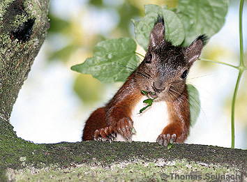 Bei Bedarf verstecken die Eichhörnchen ihre Nahrung als Wintervorrat in Baumhöhlen oder im Boden. Da einige Vorratsplätze immer wieder vergessen werden, keimen die versteckten Samen. Dies ermöglicht eine natürliche Aufforstung der Wälder.