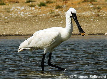verbreiterten Schnabel. Bei der Nahrungssuche schwenkt der Löffler