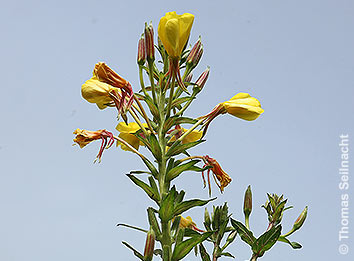 Die Blüten öffnen erst in den Abendstunden. Dies geschieht oft in wenigen Minuten, so dass man den Vorgang gut beobachten kann. Die an einer Naht verwachsenen Kelchblätter reißen unter Knistern auf, dann entfalten sich die Kronblätter. Der Sinn besteht darin, dass der süßlich-stinkende Duft in der Nacht zum Anlocken der Nachtfalter als Bestäuber freigesetzt wird. Am darauf folgenden Morgen spreizen sich die vier Narben, am späten Nachmittag sind die Blüten dann meistens verblüht. Während des Tages kommen auch Honigbienen, Hummeln und Schmetterlinge zu Besuch. Sie erhalten Nektar und reichlich Pollen. Die ungewöhnlich großen, dreieckigen Pollenkörner weisen einen Durchmesser von 0,15 Millimeter auf. Die klebrigen Fäden der Pollen bleiben meist an den Honigbienen haften, weshalb Imker nur wenig Freude an der Pflanze haben. Forscher haben herausgefunden, dass eine Blüte auf das Brummen der Insekten reagiert und dann mehr Nektar produziert. Die gekrümmten Kapselzähnchen der Frucht bleiben an Tierfellen hängen. Die Samen werden auch über den Wind verbreitet.