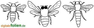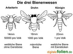 an Drüsen, von denen hier nur einige genannt werden: Kopfdrüsen und Speicheldrüsen sind bei allen drei Bienenwesen vorhanden.