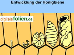 entwickelte Insekt zernagt von innen den Deckel der Wabenzelle. Bei Königinnen dauert die Entwicklung
