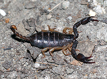Tastorgane, bei den Skorpionen sind Scheren und ein beweglicher Schwanz mit Giftblase und Giftstachel vorhanden. Ein weiterer Unterschied zu den Insekten sind die