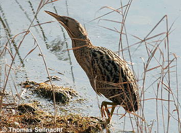 Rohrdommel in Pfahlstellung, beim Laufen im Schilf und beim Abflug