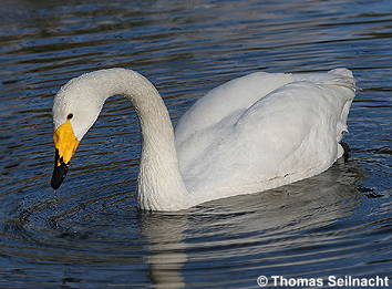 Höckerschwan äußerlich am Schnabel eindeutig unterscheiden. Der gelbschwarze Schnabel hat keinen Höcker. Beim Fliegen ist kein Fluggeräusch hörbar. Singschwäne rufen mit einem zwei- oder dreisilbigen Posaunenton, der in etwa wie ein "Huuk" oder "Huukuk" klingt.