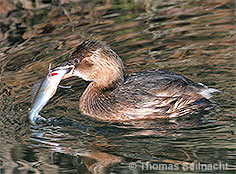 Wasserpflanzen. Sie tauchen ausgesprochen oft und jagen nach Fischen,
